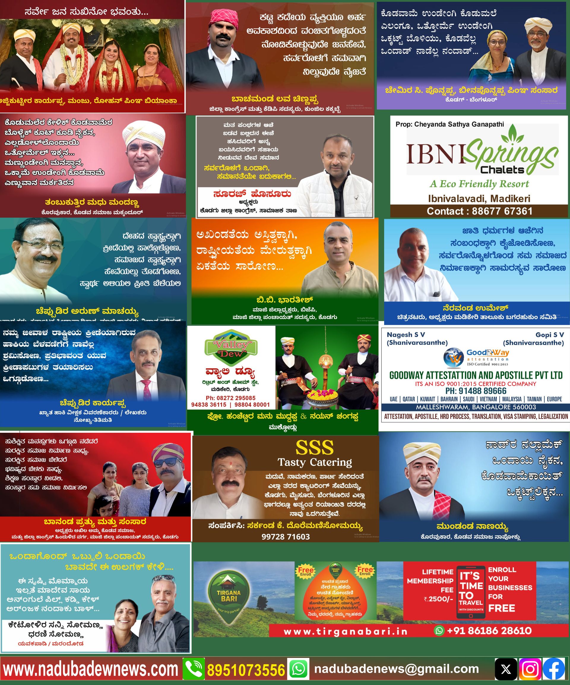 ✍️ ಚಾಮೆರ ದಿನೇಶ್ ಬೊಳ್ಯಪ್ಪ ನಡುಬಾಡೆ ನ್ಯೂಸ್: ಮಾ.22: ಇತ್ತೀಚೆಗೆ ಹಿಂದು ಸಂಗಮ ಕಾರ್ಯಕ್ರಮ ಆಯೋಜನೆ ಸಂದರ್ಭದಲ್ಲಿ, ನಾಪೋಕ್ಲು ಪಟ್ಟಣದಲ್ಲಿ ಅಪ್ಪಚ್ಚಿರ ಗೌತಮ್...